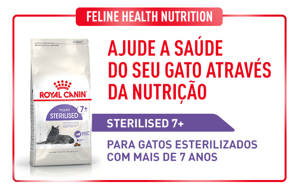 Os gatos esterilizados, a partir dos 7 anos, precisam uma alimentação específica como Sterilised 7 que possui o “complexo jovem” de Royal Canin que ajuda a manter a sua vitalidade e combate os primeiros efeitos do envelhecimento. Além do mais, Royal Canin Sterilised 7 contém um complexo de nutrientes ativos para ajudar a proteger as articulações.