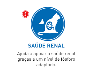 - Proteção da função renal, níveis reduzidos de fósforo ajudam no correto funcionamento renal dos gatos mais velhos. Níveis controlados de minerais e pH urinário para uma boa saúde do trato urinário.
