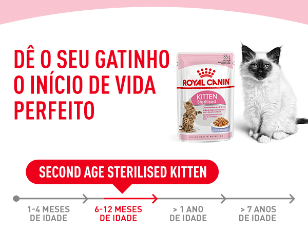 Um bebé humano é alimentado como um adulto? Obviamente que não: os bebés têm aparelhos digestivos frágeis, mandíbulas pequenas e não têm dentes, e são assim incapazes de morder uma maçã, por exemplo. As analogias entre as duas espécies facilitam a compreensão da razão pela qual os gatinhos também necessitam de uma dieta diferente da dos gatos adultos. O crescimento dos gatinhos dura pelo menos 12 meses, dependendo da raça e do sexo. A gama ROYAL CANIN Kitten proporciona o início perfeito à vida dos gatinhos esterilizados/castrados. Escolher a melhor solução de alimentação húmida e seca para eles.